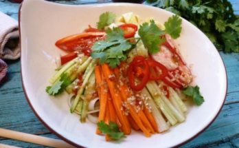 В японской кухне лапша чаще всего подается в супах, но летом из нее готовят Хияши чука- идеальное блюдо для жары. Легкое, прохладное, хрустящее, с пряным острым соусом.